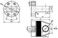 Gewicht: ca. 500g, Abmessung Durchmesser= 55mm, Höhe 65mm, Befestigung 4x Gewinde M8, Material Stahl, Schutzart IP67.
