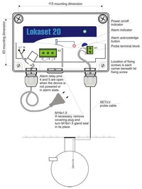 Lokaset 20 ist eine Überfüll-Warnanlage für Klärtanks, Wassertanks oder andere leitende Flüssigkeiten. Nicht für Ex-Zonen.
